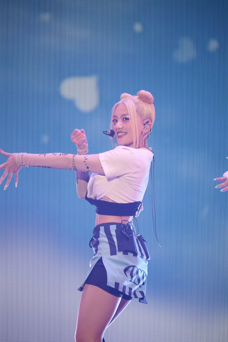公演の幕が開けると、9月にリリースした1stミニアルバム『NEW DNA』の1曲目、2曲目に収録されている「HESONOO」と「X-GENE」を披露。この2曲のステージパフォーマンスは初のお披露目となったため、会場はスタートから大いに湧いた。