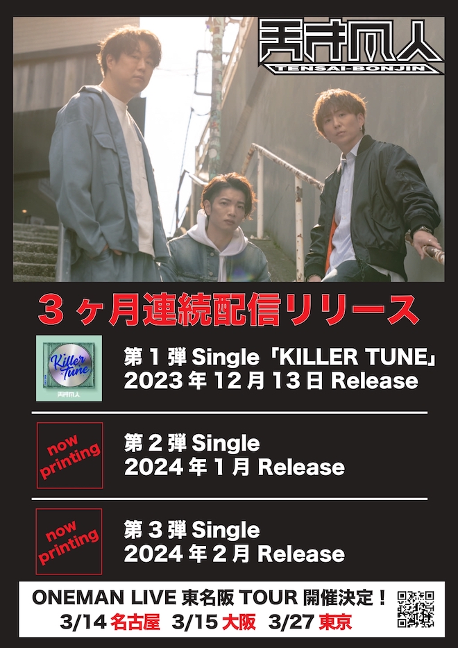第1弾ニューシングル「KILLER TUNE」は、12月13日にリリースされる。今までの天才凡人とは一味違う新しいアップテンポの楽曲となっており、第2弾、第3弾シングルもこれまでとは違う印象の楽曲になりそうだ。