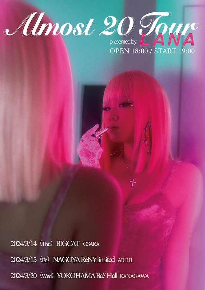 現在、自身初の3都市ツアーとなる<Almost 20 Tour>のチケットが抽選受付中だ。こちらのツアーはLANAが20歳という節目を目前に迎えた3月に、BIGCAT(大阪)、NAGOYA ReNY limited(名古屋)、YOKOHAMA Bay Hall(横浜)の3箇所にて開催される予定だ。