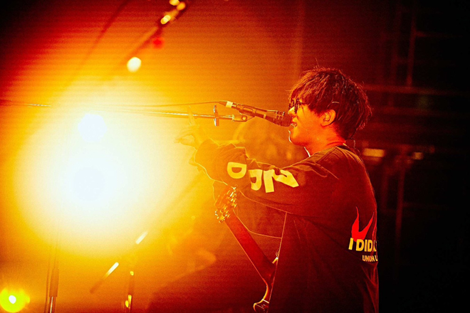 まずはELLEGARDENのステージからライブはスタート。細美武士(Vo・G)が「行こうぜ、熊本!」と叫んで始まった「Fire Cracker」から、 すさまじい熱量の演奏が会場を震わせていった。2018年に再始動を果たして以来初のアルバムを昨年末にリリース、再び最前線へと躍り出たELLEGARDEN。重さと迫力をさらに増した今の彼らの音が、「Spacesonic」「Supernova」といった名曲たちを鮮やかにアップデートしていく。フロアでは拳が突き上げられ、クラウドサーファーも続出。「チーズケーキ・ファクトリー」ではシンガロングも生まれ、場内の一体感は最高潮に。美しいハンズクラップが広がった「Mountain Top」では高田雄一のベースソロや高橋宏貴のドラムの優しい音色が温かな空気を作り出していった。