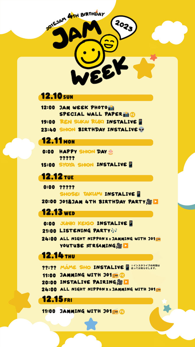 JO1が本日12月11日、結成から4周年を迎えた。その記念日を祝うべく、「2023 JAM WEEK」と題し、様々なコンテンツが展開されている。
