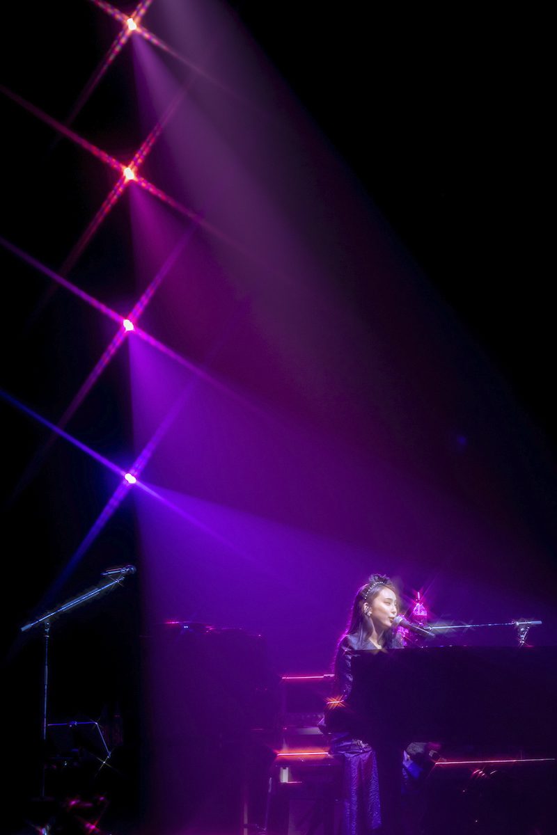 世界征服を目標に掲げ続けてきたこのバンドにとってのテーマ曲ともいえる「DOMINATION」を幕開けに据えながらの、序盤の畳み掛けるような攻撃はあまりにも見事だったが、誰もが鉄板と認めるはずの曲を立て続けに演奏しても、今のBAND-MAIDには“弾が切れる”ということが起こり得ない。しかもそうしたキラーチューンの数々をまっすぐにぶつけてくるばかりではなく、「Different」と「anemone」についてはSAIKIとKANAMIのふたりだけで、アコースティックで披露。しかもそれに続いてSAIKIは、グランドピアノの弾き語りで「Choose me」を聴かせたのだった。