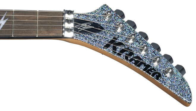 『リジ―・へイル ボイジャー』は、リジ―による監修の元、角が鋭く尖った特徴的なボディ・スタイルを採用し、クレイマーの既存モデル”ボイジャー“をベースに制作。さらに、このギターはステージ映えのする美しいブラック・ダイアモンド・ホログラフィック フィニッシュで仕上げられている。