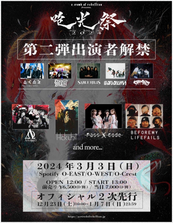 a crowd of rebellionが主催するサーキットイベント<“咆光祭”2024>(読み:ホウコウサイ)の第二弾出演者が発表された。