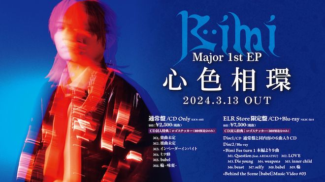 Bimiが10月にメジャーデビューしてから初となるEP『心色相環』(よみ:しんしきそうかん)を、2024年3月13日にリリースされることが決定した。