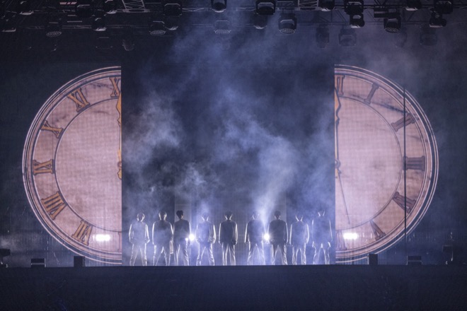 最後は時計の針が同じ位置に戻るかのごとく、9人がライブ開演時と同じポジションについて本編は終幕。彼らが向こうに消えたLEDパネル上では時計が1時を指し、“Go to the 13 years”というメッセージが浮かび上がった。時計の針が一周しても、それはまったく同じ時間に戻ってきたわけではない。12時を超えた1時、つまり13時という新たな一歩を刻んでいくということであり、12周年から13年目を迎えた超特急にもまったく同じことが言えるのだ。