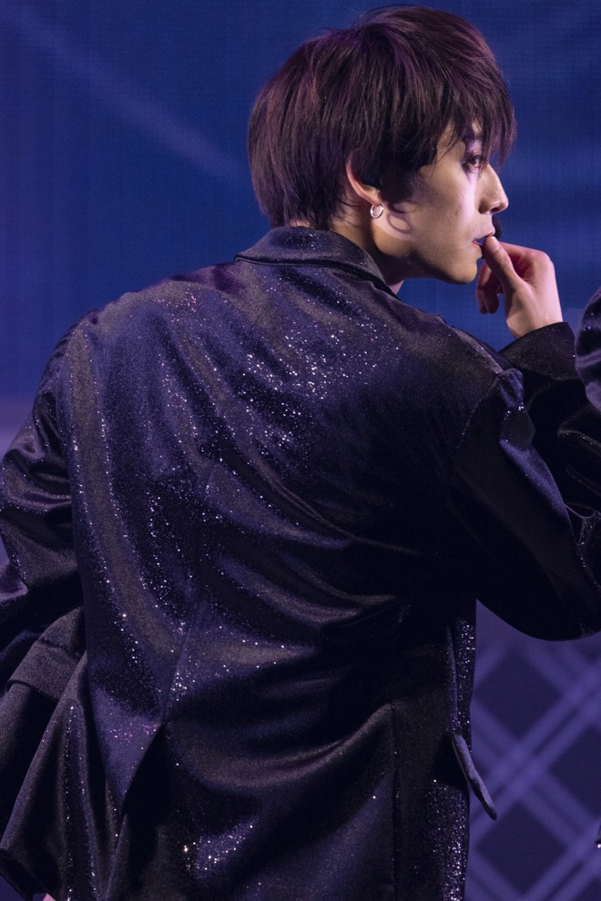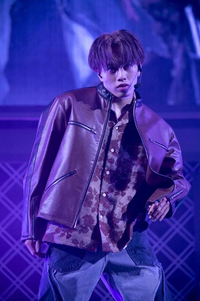 再び時を巻き戻して、LEDビジョンには2023年を月ごとに振り返るオフショットや動画が。そして打ち鳴らされるクラップ音と共に9人が現れ、床を叩いて這いつくばる特徴的な振り付けから「Survivor」が披露されると、意外過ぎる選曲に場内は騒然となる。数年ぶりにセットリスト入りした1stアルバム収録曲は、もともと初期のリリースイベントで入場曲として使われていたBGMに歌詞をつけたものであり、いわば超特急の歴史と共に在った曲。そんな意義深いナンバーの9人バージョンは、アロハ、マサヒロ、ハルと、新たに加わったメインダンサーを曲始まりからフィーチャーして、強く“新生”を印象付けるものとなった。ラップやフェイクが交錯するボーカルは切れ味鋭く、戦いへの決意を熱く映し出し、握った拳を振り上げる力強いダンスも俄然迫力を増して、オーディエンスの目を釘付けにする。難度の高いアクロバットで宙を舞うユーキを筆頭に、9人の射貫くような鋭い視線も、己のイメージカラーのジャケットをまとったビジュアルと相まって“Truth Identity=真の自我“の確立に対する強い意志を提示。“くじけそうなときもある それでも生き抜いてく”というリリックは、何があろうと突き進んでいくという現在の彼らが持つ信念と重なり、“僕らだけ見て”と目を逸らすことを許さない。超特急の“時”を綴った物語を締めくくる曲として、この曲が選ばれた理由はそこにある。