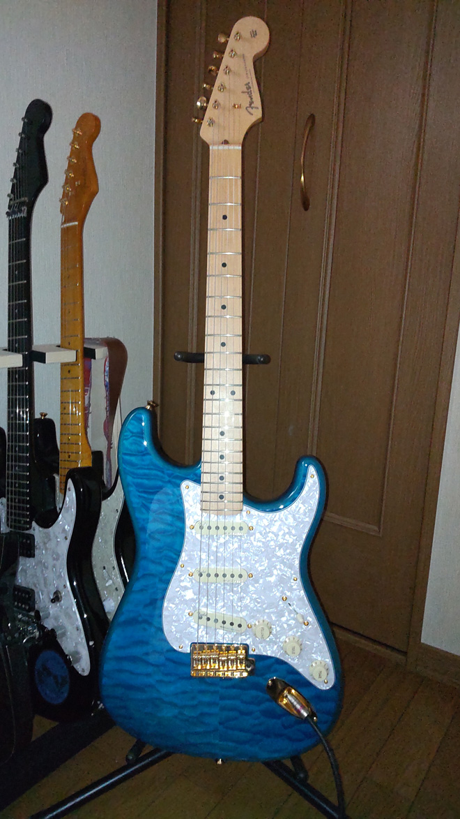 30分くらい眺めたあと、made in japanなので、買えない金額じゃないなと、意を決して店員さんを呼び、試奏させてもらい、後日取りに来るので、という約束をして帰りました。帰り際、またやってしまったか!っという思いもありましたが、後日家に連れて帰り、いつもの自分のセットで音を出してみると、ハンバッカーとは明らかに違うフェンダーらしいシングルコイル特有のパキッとした音色に、ニヤニヤしながら部屋で楽しんでおります。