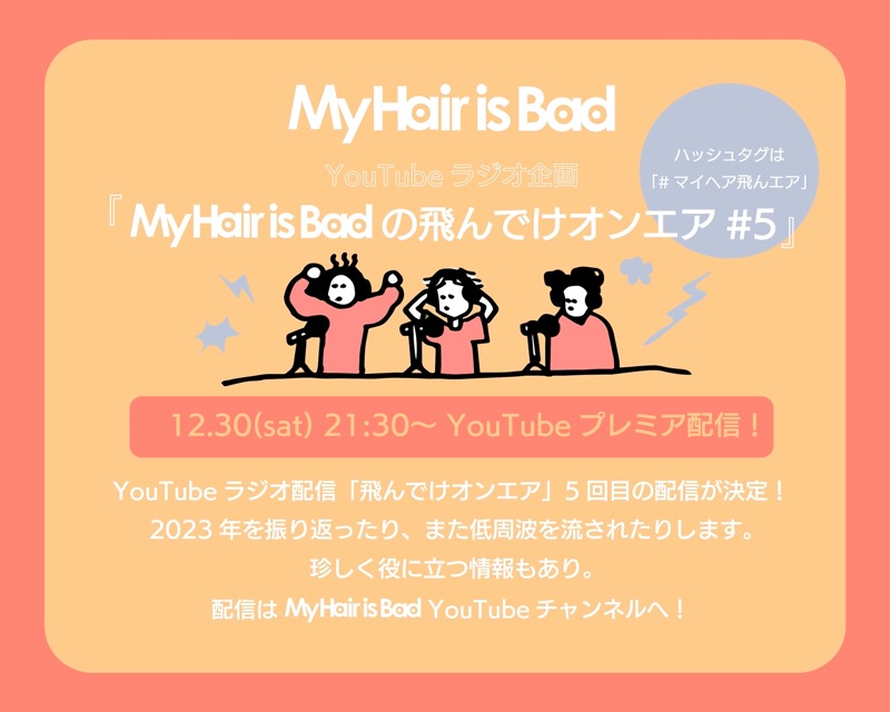 My Hair is Bad、2023年を締めくくるYouTubeラジオ企画第5弾『飛んでけオンエア』をプレミア公開