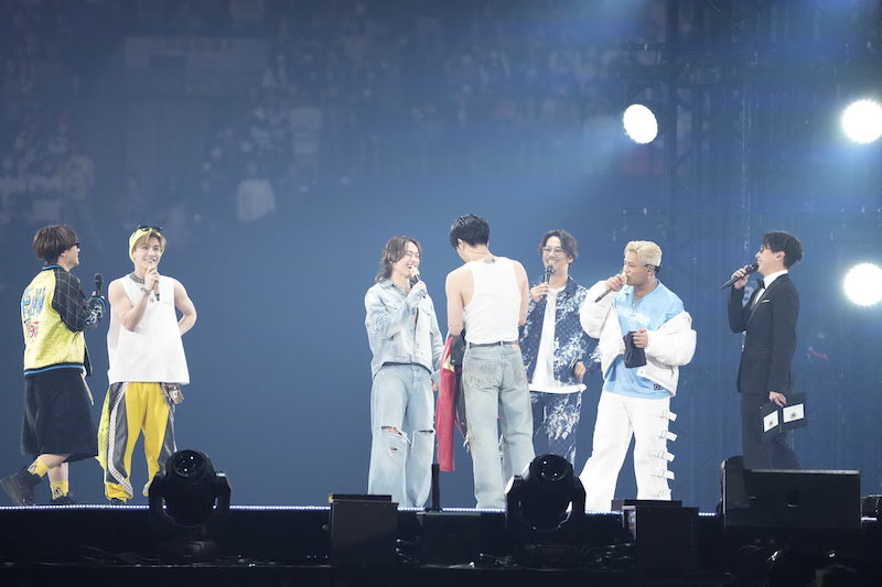 後半は「LET’S PARTY」をはじめとしたメドレーでスタート。メンバーは再度フロートに乗り、客席を煽りながら熱気を高めていく。メドレー後は「それでは本当の『STARS』やります!」(今市)、「今度はちゃんとボーカルが歌います!」(ØMI)と言って、本来の形での「STARS」披露も。「MATEのみんな歌えるよね?」とØMIが呼びかけ、ラストは観客とともに「RAINBOW」を歌って本編を締めくくった。