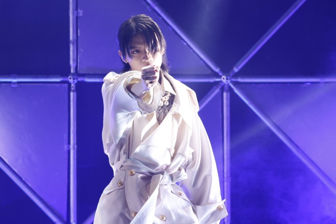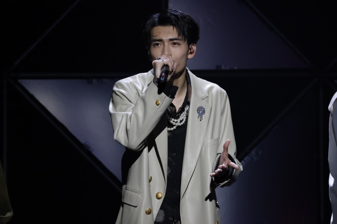 「半分相逢傘」は頭から杢代、長野、桜木が床へと寝そべる斬新な振り付けが、何やらただならぬムードを醸す禁断の恋の歌。曲中で女性と掛け合う台詞に、これまでさまざまなメンバーがトライしてきたが、今年1月のパシフィコ横浜ワンマンで杢代が自身のソロパートとして挑んだ際、とんでもなくマッチして場内の阿鼻叫喚を呼んだのは記憶に新しい。今回は“俺のこと好き?”と聞きながらも、相手から問い返されると“え? 俺?……どっちでもいいでしょ”と返して、自分勝手なのに途方もなく魅力的な男性を演じてみせた。観測者の“大人な妖艶な曲をこの若さで表現できるのは杢代和人がレベチイケメンたる所以ではないでしょうか”というコメントも然もありなん。また、激情を寸前で抑え込むような長野の歌いまわしや、杢代と武藤でボーカルを重ねるエンディングも聞きどころだった