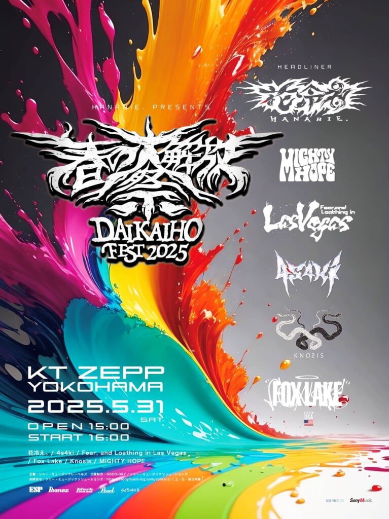 2018年にメンバーの高校卒業記念として第1回目をライブハウス渋谷CYCLONEで開催して以来、毎年恒例となっている<春の大解放祭>。今年で結成10周年を迎え、最近は国内だけでなく北米やヨーロッパなど海外もツアーで飛び回り、昨年はアメリカ最大級のフェス<ロラパルーザ2024>のメインステージにも出演するなど大活躍の花冷え。とあって、今年の<春の大解放祭>は過去最大キャパシティの会場での開催となった。今年の出演者は花冷え。に加え、4s4ki、Fear, and Loathing in Las Vegas 、Fox Lake(from USA)、Knosis、MIGHTY HOPE。さらにDJとも(ex:ヒステリックパニック)とLIFE is SAMPLINGの2組が転換時のDJアクトとして出演。総勢8組による盛大な祭りとなった。