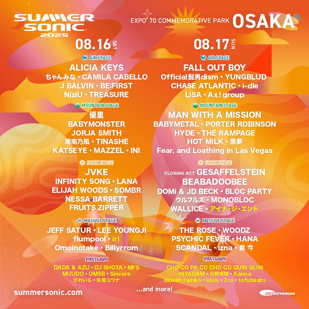 <SUMMER SONIC 2025>、ステージ分け&追加出演者を発表