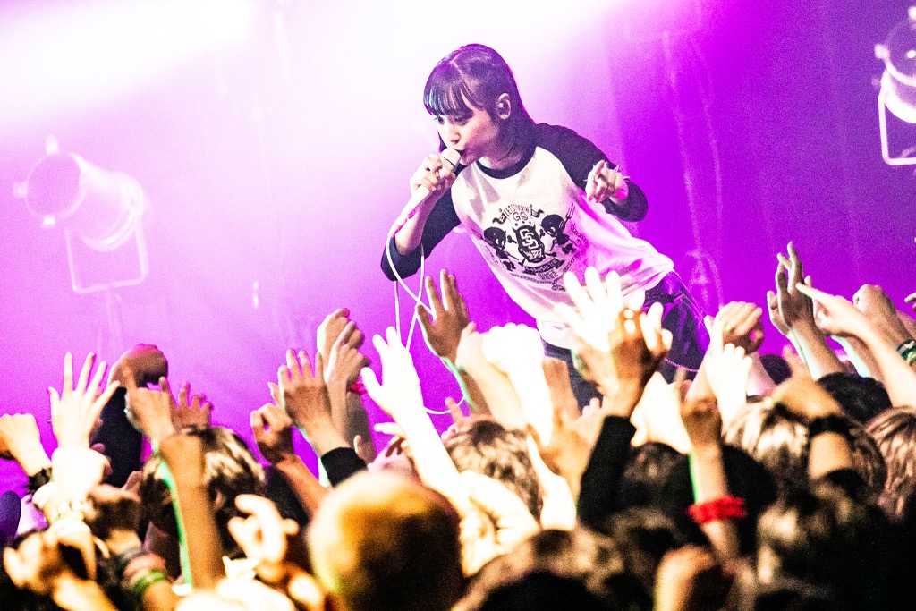 ここから怒涛のキラーチューンが続き、フロアには夥しい数のダイバーや、この日最大ではないかと思うモッシュピットが出現する。「作戦会議」ではなちが「今日喉が千切れ飛んで一生歌えなくなってもいいと本気で思ってる」と観客を煽ってフロアの大合唱は更にボルテージをあげ、るみなすはステージ中央で楽しそうにギターソロを弾きあげる。最後はauのCMソング「ハッピーなんて」でクラブチッタをダンスフロアに変え、最高潮の盛り上がりで本編を締めくくった。
