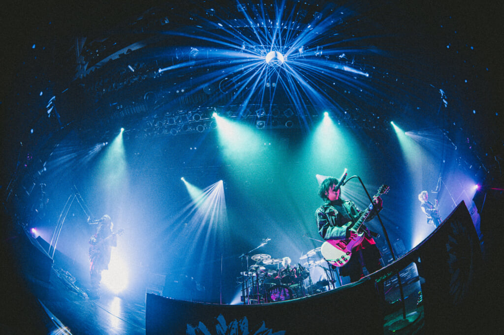 千秋:自分で考えて、と。意味ないかもしらんし、あるかもしらん。で、ノーコメントです(笑)。いろんな想像を膨らませていただければ。この曲も今回入るとは思ってなかったんですけどね。2017年には存在してたデモで、当時僕がハマってたサウンドだったんですよ。当時ゴリゴリ系のダウンチューニングの音が嫌になっていて、“俺はもっとポップなんがいい”って思ってたときに作った曲です。で、せっかくやから武道館が終わった後にもう一回デモを作り直して、メンバーとかスタッフの選曲会のときにデモを出したら、これを選ぶ人が何人かおって。今回の収録曲の中では一番最後に決まったのがこの曲でしたね。