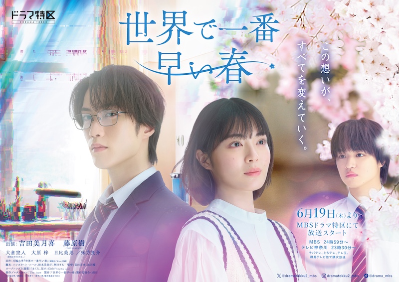 ドラマ『世界で一番早い春』は、講談社「Kiss」にて連載している漫画『世界で一番早い春』を基に、吉田美月喜と藤原樹(THE RAMPAGE)のW主演で実写化が決定した、タイムスリップラブストーリー。いよいよ来週初回放送スタートとなる本作の予告編、メインビジュアル、主題歌情報が解禁となった。