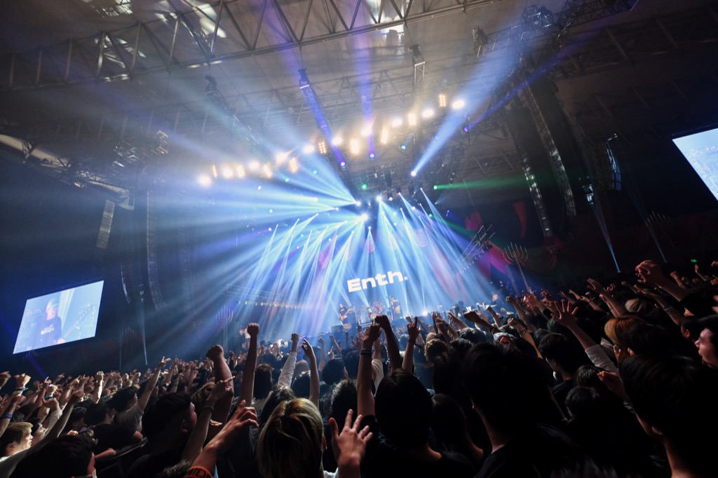 初めて<SATANIC CARNIVAL>に誘われた時に、その喜びのテンションで完成させたという「HAHA」では、モッシュパート、スカ、ビートダウンを交錯させながら名前のないダンスを巻き起こす。さらに「SATAN STAGEに出られて嬉しいんだけど、SATANだろうがEVILだろうが、どこのライヴハウスだろうが、俺らが一番ヤベえことを証明するだけ」という言葉からぶっ放した「”EN”」ではステージ上のLEDに爆炎が上がり、完全なるグチャグチャが完成。ルールなき秩序をまさに体現するライヴである。そうそう、この「”EN”」で歌われる《散り際に光る》という言葉もまた、「ムーンレイカー」を締める《死に様を決めた》という宣言に通ずるものであり、ENTHというバンドのスタンスを端的に宣言するものだ。全力で生きて全力で死ぬ真っ向勝負の生き方を示した歌が「一番ヤベえ」という事実こそ、ENTHが体ではなく心に刺さる理由だと言っていいだろう。見渡す限りのライヴハウスフリークと共に、最高の遊びを繰り広げるだけ。だが、なぜ彼らが遊んで飲んで笑って大暴れするのかと言えば、誰もが《流した涙 いま光れ》(「TEARS」)という願いを抱いているからだ。