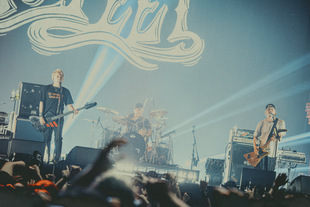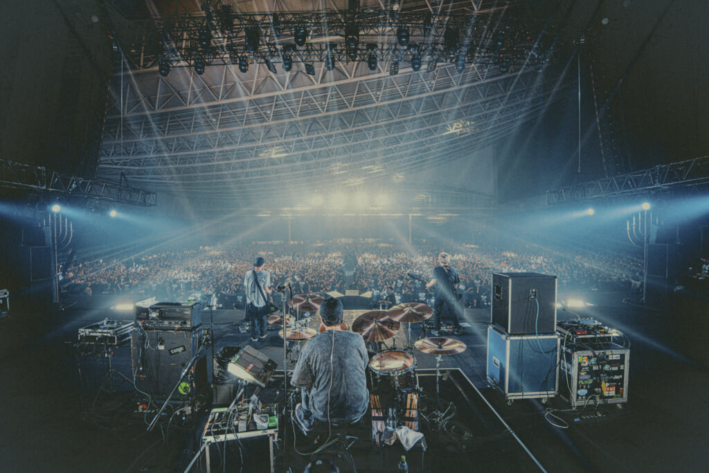 「いつか誰かに出会える保証もないし、いつかひとりじゃない保証もないし、幸せになれる保証もないし、努力が実る保障もない……でも、ぶっ飛ばそうぜ!」とTAMUMAが気炎を上げ、その胸の内を体現するようなビートで突き進む「goes on」へ。フロアをとんでもなく揺らし、「これで終わる予定やったけど、あと4分あります。お前ら、パンクロックを食らって死ね…そして、生きろ!」というTAKUMAの叫びから疾走感抜群の「back to the sunset」を突き刺し、最後は彼ららしく一瞬で駆け抜ける「時間がない時のRIVER」を披露。投げかけた言葉通り、明るく、ふざけて、とぼけて、ぶっ飛ばす最高のパフォーマンスだった。