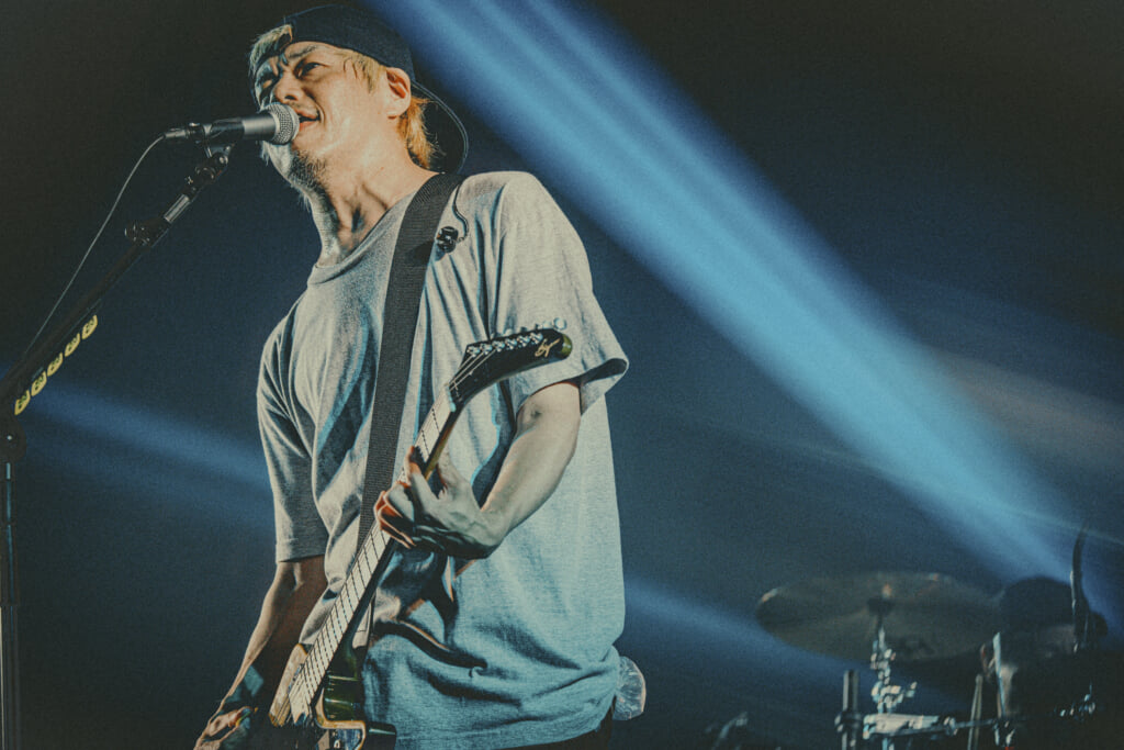 流れるようにムーディーな始まりから一転、激しく覚醒する「ハローフィクサー」を心の奥底まで響くリズムと歌で投下していき、キレのよいラップと叫び、激アガり必至のギターリフも強烈な「1sec.」と続くのだから観客の興奮も天井知らずだ。当然、速いビートは彼らの真骨頂のひとつ。強い音に撃ち抜かれた観客は大きな声を上げながら駆け回る。終盤、声にならない声で叫ぶTAKUMAの姿も美しかった。