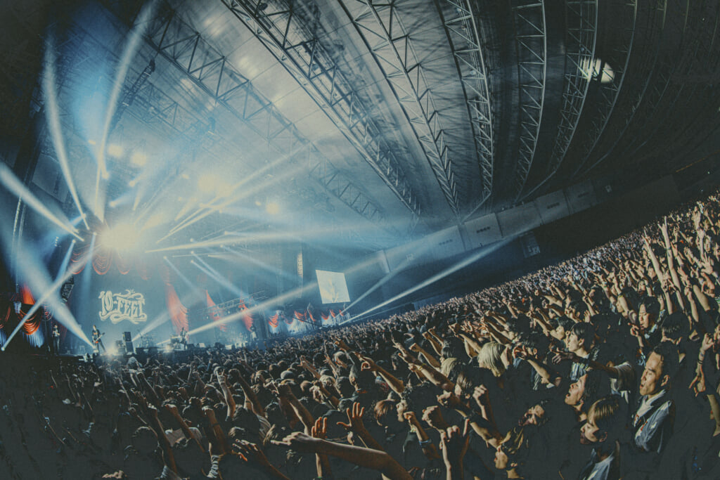 加えて、そんな中でもユーモアを欠かさないのも10-FEET。ここぞ!とも言えるクライマックスでTAKUMAが脇を鳴らすような仕草をして笑いを誘ったり、そこから続けた「第ゼロ感」をパワフルに鳴らしながらも、終盤にはマイクの位置をグッと落として、しゃがんだまま歌い続けてみたり、まずは自分たちからタガを外してみせるようなスタイル。そこがいい抜け感をもたらしていたことにも触れておきたい。