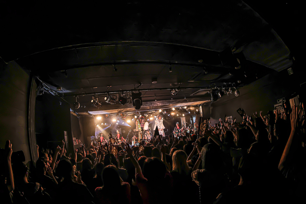 続いて登場した鬼ヶ島(Vo.こう鬼、G.威吹、Gu.YOSHIHIRO、B.SHUSE、Dr.志雄、Key.藤原泰斗)は、鬼ヶ島をテーマにしつつポップなサウンドで会場を圧倒。こう鬼の迸る歌声と、緻密かつ力強い演奏が織りなす音の厚みと推進力は、観客を一瞬にして熱狂の渦へと引き込んだ。特に「恋囃子は宵に舞い散る」は、和の情緒溢れるメロディとこう鬼の切なくも力強いボーカルが融合し、まるで宵闇に舞う花びらのような儚さと美しさを表現。観客は、その情感豊かな世界観に引き込まれ、会場に静かな感動が広がった。一方、「それもいつか終わること」では、哀愁漂う歌詞が心を掴み、鬼ヶ島のエモーショナルな一面を際立たせた。こう鬼の想いを込めた歌唱と、バンドのダイナミックな演奏が織りなすコントラストが、フロアを熱狂と余韻の両方で満たした。