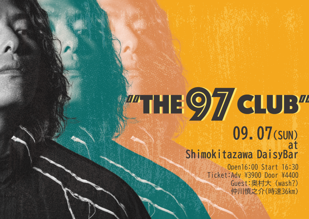 渡邊一丘(a flood of circle)主催<The 97 Club>、ゲストにwash?の奥村大と時速36kmの仲川慎之介