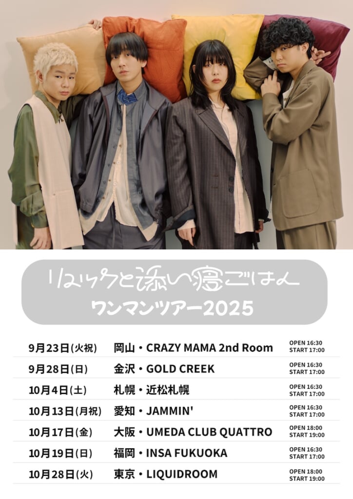 リュックと添い寝ごはんが、<ワンマンツアー2025>を開催することを発表した。また、7月9日に新曲「恋煩い」を配信リリースすることも決定した。