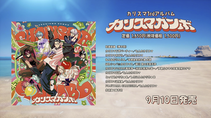『カリスマガンボ』には、「FUJIYAMA CHARISMA」のほか、「カリスマ温泉郷」「とってもかりちゅま」「カリスマさびら」「カリスマピザパーティー」など多彩な楽曲が収録予定。現在、オフィシャルグッズストア「カリスマガレージ」では、7月27日23時59分までの早期予約キャンペーンも実施中で、対象者には特典として「カリスマガンボ まな板シート」が付属する。