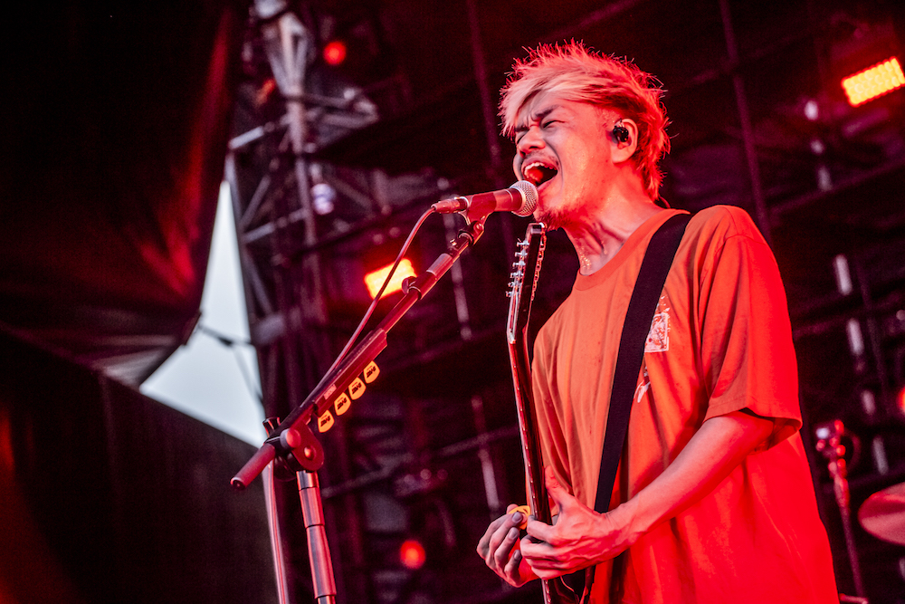 そしてオレンジの照明が夕日のように輝く「back to the sunset」から「太陽4号」、さらにROTTENGRAFFTYのN∀OKIとNOBUYAをゲストに迎えた「その向こうへ」という流れは、心の澱のようなものを昇華するいっぺんのストーリーのように聞こえてくる。泣きのメロディに「back to the sunset」や「太陽4号」でTAKUMAの声がわずかにかれているのは、今日一日、いろんなステージに出演し、また出演した仲間たちと語らったからだろうか。その充実が見てとれて、ともに歌う観客の声もエモーショナルだ。