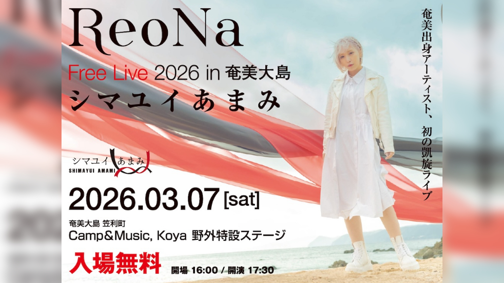ReoNa、故郷・奄美大島で初凱旋フリーライブ開催決定
