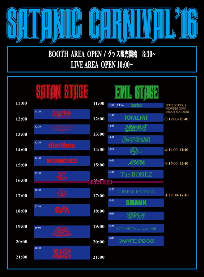 PIZZA OF DEATH主催<SATANIC CARNIVAL 2016>が2016年6月4日(土)、幕張メッセ国際展示場9-11ホールにて開催される。第三回目を迎えるこのカーニバルはパンク/ラウドロック/ハードコアの新たな大型フェスとして、全21組の第一線バンドや今後のシーンを担う新生バンドが名を連ねた。BARKSでは全バンドの速報レポート/舞台裏レポート特集をお届けしたい。