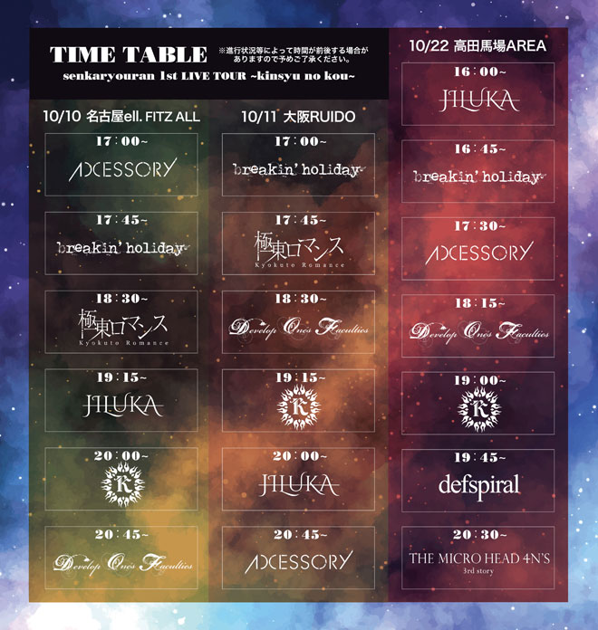 AXESSORY / K / JILUKA / defspiral / Develop One’s Faculties / breakin’ holiday / THE MICRO HEAD 4N’S
