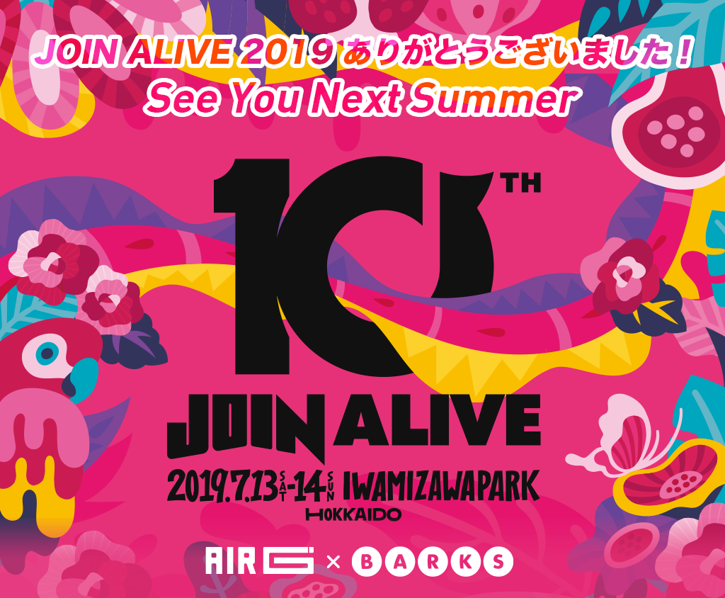 2010年の初開催以来10回目を迎える北海道が誇る夏の野外フェス<JOIN ALIVE>が7月13日(土)・14日(日)の二日間、岩見沢で開催される。BARKSでは2016年、2017年、2018年に引き続き、2019年も参戦。
