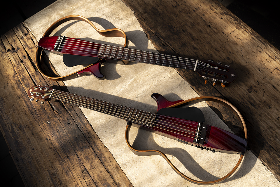共鳴胴を持たない独自のデザインにより高い静粛性を実現。「SRTパワード」システムを搭載し、ギターのボディの響きや空気感までも表現した自然なアコースティックギターサウンドを楽しむことができます。スチール弦とナイロン弦の2種類をラインアップ。