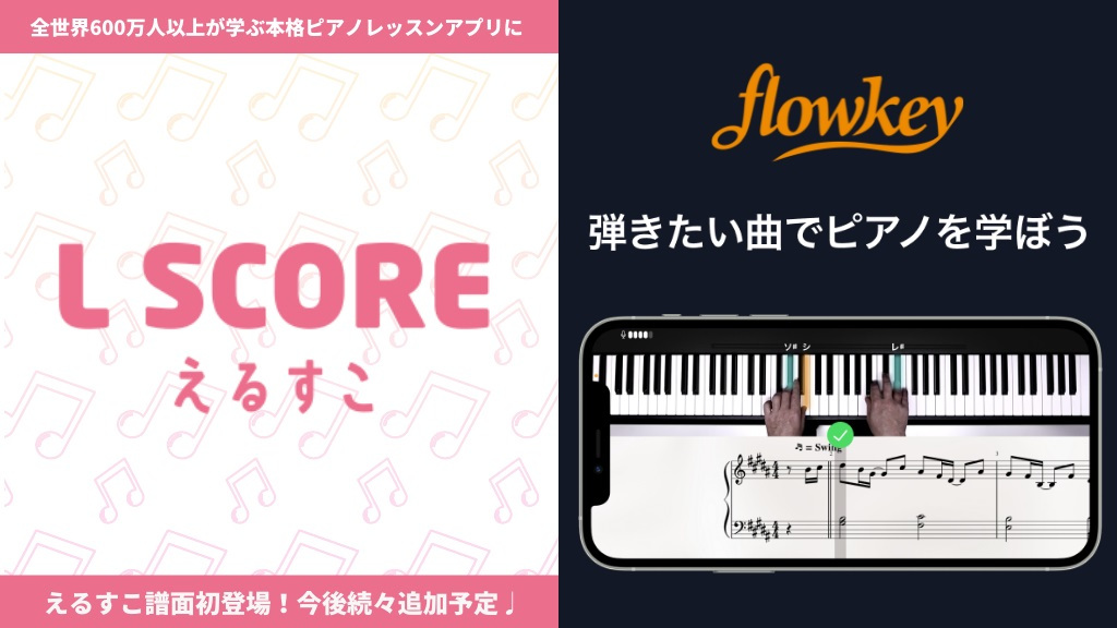「L SCORE(えるすこ)」の公式アニソン譜面がピアノレッスンアプリ『flowkey』に初公開