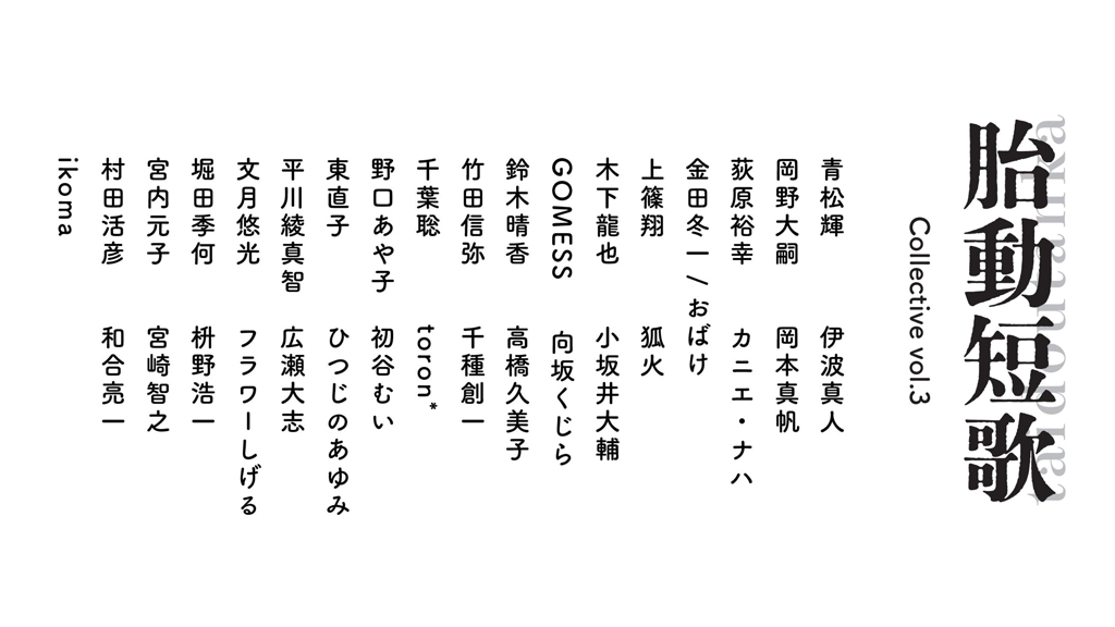 詩人、俳人、ミュージシャン、ラッパー、ライター、書店員などが参加する“紙面上の短歌フェス”、『胎動短歌Collective vol.3』発売