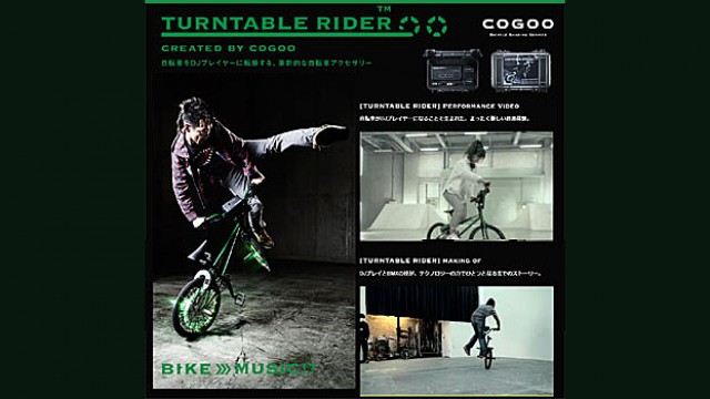 自転車をDJターンテーブルに転換する世界初の自転車用 拡張デバイス「TURNTABLE RIDER」が登場