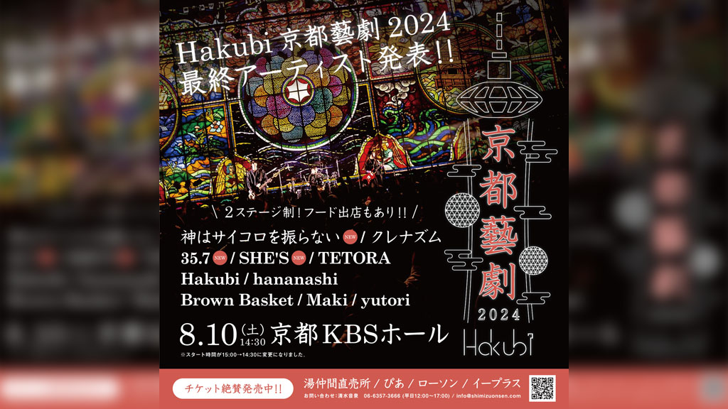 Hakubi主催<京都藝劇2024>最終出演アーティストに神サイ、SHE’S、35.7