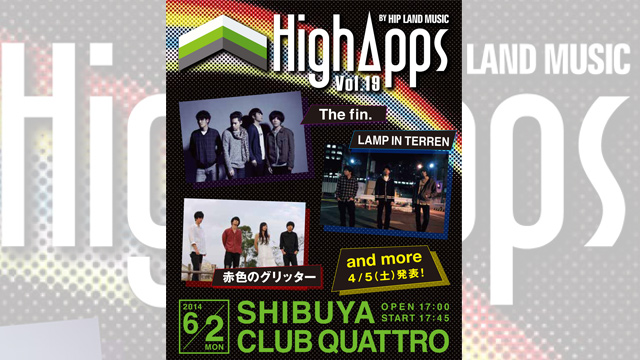 <HighApps Vol.19>開催決定 The fin.、LAMP IN TERREN、赤色のグリッターら出演