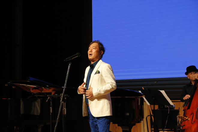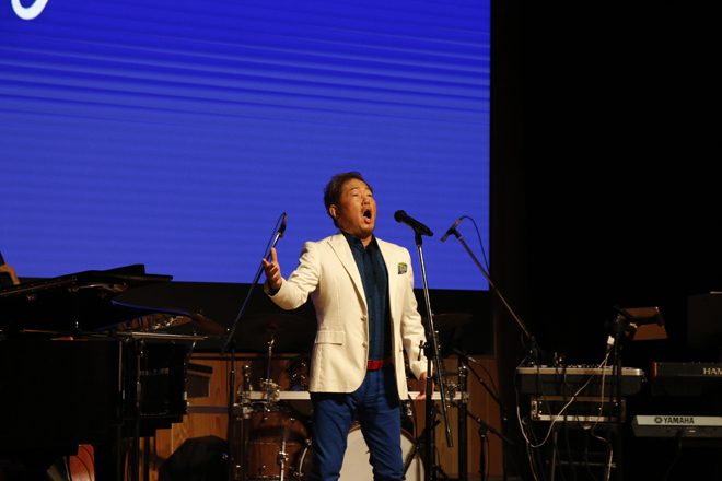 ここで一旦小休止。「テノールアーティスト」たる所以を語り、次曲を選んだ理由を話してくれた。その曲はイタリアを代表するカンツォーネ「オー・ソレ・ミオ」。本場イタリアではオーソドックスな「オー・ソレ・ミオ」を歌う人はいないそうで、日本ではあまり披露されない一風変わったアレンジで披露した。続いては山形民謡「最上川舟歌」。日本の伝統的な音楽を世界に発信したいとの理由から選ばれた曲だそうで、自分が所属するスペイン人とのテノールユニット「ADESSO」のメンバーたちも気に入ってプログラムに加えているそうだ。