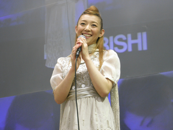 表題曲である「千の風になって」は、2005年に阪神大震災から10年の区切りで開催された<宝塚歌劇チャリティーコンサート>で初めて歌い、それ以来、ファンの中でも評判となっていた楽曲。宝塚きっての歌唱力の持ち主である彩乃の堂々とした歌唱とパフォーマンスに、店内は静まりかえって聴き入った。