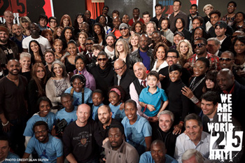 「25年前、エンターテイメント業界はエチオピアの飢餓を救うために「We Are The World」をレコーディングする事で、人々を助けるためのコミュニティーとしての力を発揮しました。現在もアフリカに対する支援の必要が続く一方で、今日新たにハイチが先日の地震による未曾有の災害に苦しんでおり、報道のカメラが去った後も続く、永続的な救済を早急に欲しています。我々はアーティストとして、「人々を助けるためのWe Are The World」という精神に則り、この25周年記念に一致団結しました。」──クインシー・ジョーンズ
