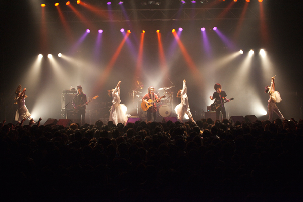 中盤は「沈黙」「She is the beautiful」とスローなナンバーが続き、ライヴの終盤ではVO hozzyのMCで“2012年は世の中は混沌としていて不安ばかりだったが、きっと2013年は身近な人や友人などと少しずつ素敵な世の中にしていきましょう”とメッセージが伝えられた。さらに先日発表された新曲「星霜、誘う」では、ミュージックビデオにも出演したダンサー達がサプライズで2曲登場しライヴに花を添えた。