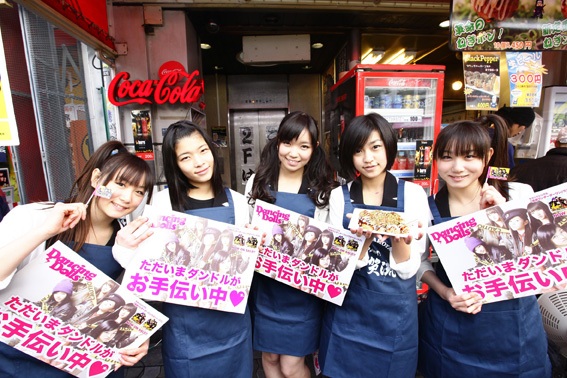 今回の企画は、彼女達の地元・大阪アメリカ村の人気たこ焼き店『甲賀流』で、Dancing Dolls仕様の旗(通称“ダンドルフラッグ”)がついたたこ焼きを販売、メンバーは接客のお手伝いまで行なうというスペシャルイベントだ。