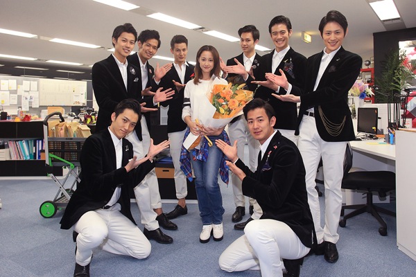 フジテレビ4月クールの土曜ドラマ『ファースト・クラス』(4月19日 23:10より初回オンエア)のテーマソング「Heroine」を歌う8人組男性グループ・SOLIDEMO(ソリディーモ)が、ドラマの撮影現場に訪れ、主演の沢尻エリカを表敬訪問した。