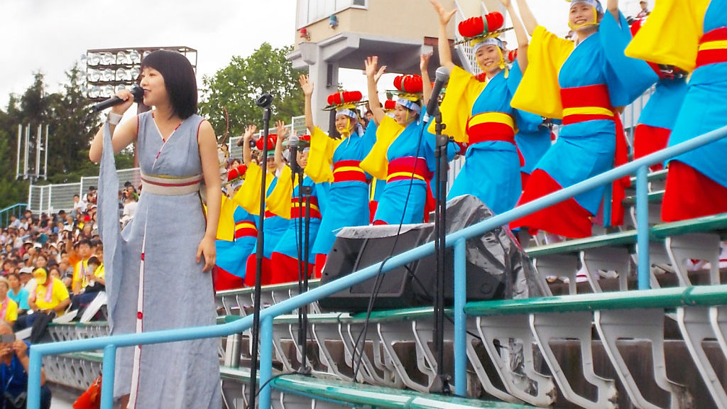 このたび公開されたミュージックビデオは、“さんさ踊り”の発祥の地と言われる盛岡市三ツ石神社の“三ツ石”前で撮影されたもの。地元のさんさ踊りチームを従えて歌う華やかな映像は、東北の夏祭りを一足早く味わえる内容となっている。