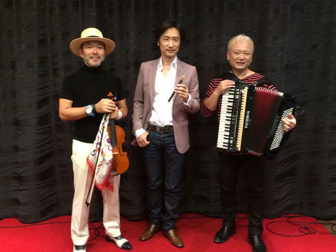 演奏者:東儀秀樹(篳篥・笙 ほか)、古澤 巌(ヴァイオリン)、coba(アコーディオン)