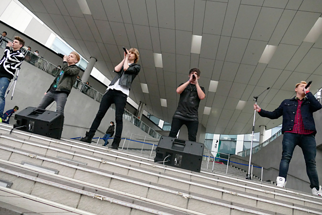 ラストのお台場SHOWCASEでも、小雨がぱらつく天候とはなったものの、ガンダム前のイベントスペースにはロミオを待ちわびるジュリエットが大挙して押し寄せ、アフター・ロミオへと黄色い声援を送った。声援に応えるように、メンバーも「TOKYO 2 LA」、「Pass on You」、「LOL(Love On Lock)-acoustic ver.-」、「Meet Me in My Dreams」、「Juliet」の全5曲を披露。全米を回って鍛えあげたパフォーマンス力を余すところなく発揮した。