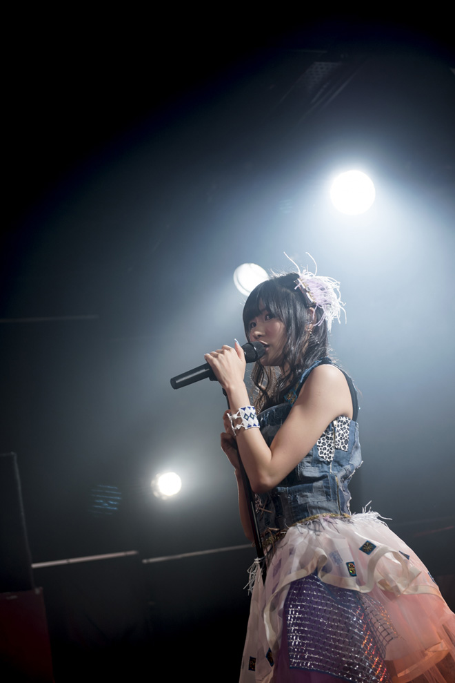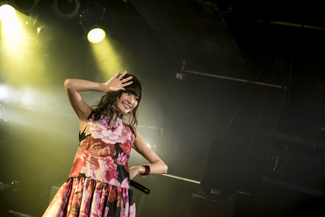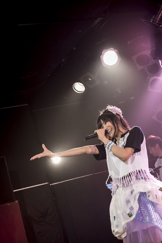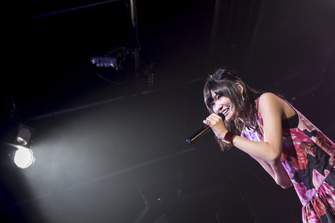 夏らしく“攻めた”衣装にチェンジすると、同じく本人作詞曲である「Last_Pain」では気持ちのこもった一言一言を届けていく。アルバムでも曲によってさまざまな表情を見せたように、ステージ上で多彩なパフォーマンスでファンを魅了した。さらに、タオル曲の「Shine ! Shine !」、激しくダンサブルな「100% Believe」など、タイプの違うアゲアゲ曲を披露。MCでは、原宿アストロホールに以前立った時は観客が20人程度しかいなかったと振り返り、今回は1部、2部とも超満員なことに「本当に幸せです」と嬉しさを噛みしめていた。そんな気持ちを込めて、本編ラストはアルバムの曲順も最後にしたいとこだわった「Say La La La」を歌い上げた。
