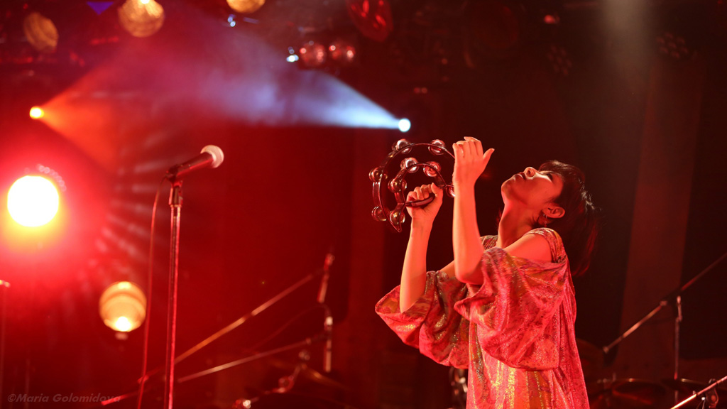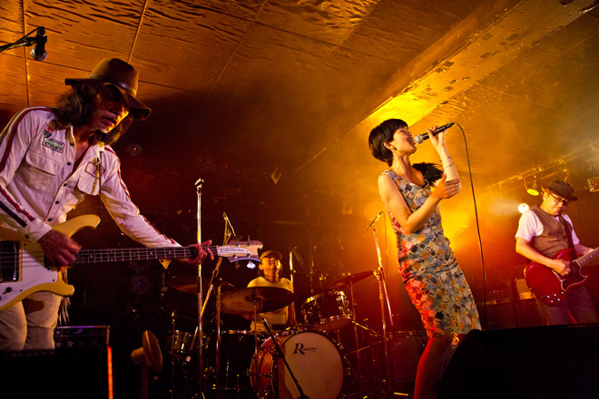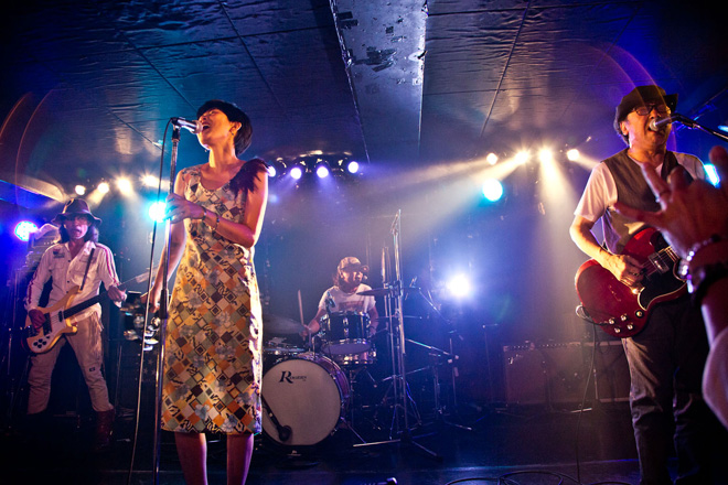 続く「Grab The Earth」では、一気に熱くなったフロアを少し冷ますかのような心地よいミディアム・チューンがオーディエンスの身体を揺らす。次なる曲は、前作『Ψ』で故・宮内和之(ICE)がボーカルを務めたブルージーなナンバー「回天」だ。宮内自身の声でもある”男言葉”的な歌詞すらも潔くぴったりとハマる国岡真由美の表現力には驚かされるが、TAKEが鳴らすギターしかり、メンバー・チェンジを経てもBLIND HEADZの世界観は全くブレていない。